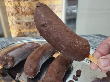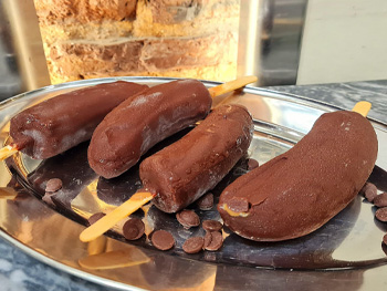 Banana Natural bañada en Dulce de Leche recubierta con Chocolate semi-amargo MUYYY RICOOO!!!